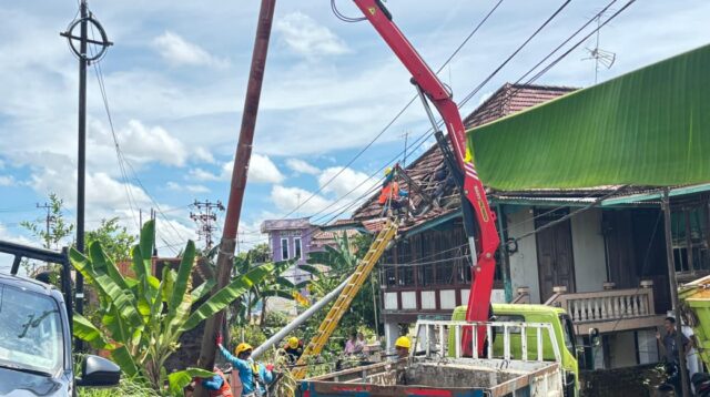 PLN Tuntaskan Perbaikan Tiang SUTM Akibat Badai di Desa Banding Anyar
