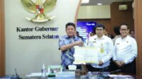 Palembang. Gubernur Sumsel Herman Deru, menerima penyerahan sertifikat Hak Pengelolaan (HPL) Mozaik 5 dan Mozaik 6 Tanjung Carat, atas nama Pemerintah Provinsi Lihat selengkap Nya