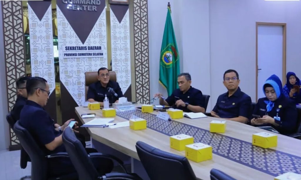 Palembang. Sekretaris Daerah Provinsi Sumatera Selatan, H. Edward Candra, mengikuti rapat terkait perpanjangan waktu penyampaian data dukung penilaian creative financing pada pemerintah daerah, yang digelar secara daring dari Command Center, Kamis (26/3/2026).
